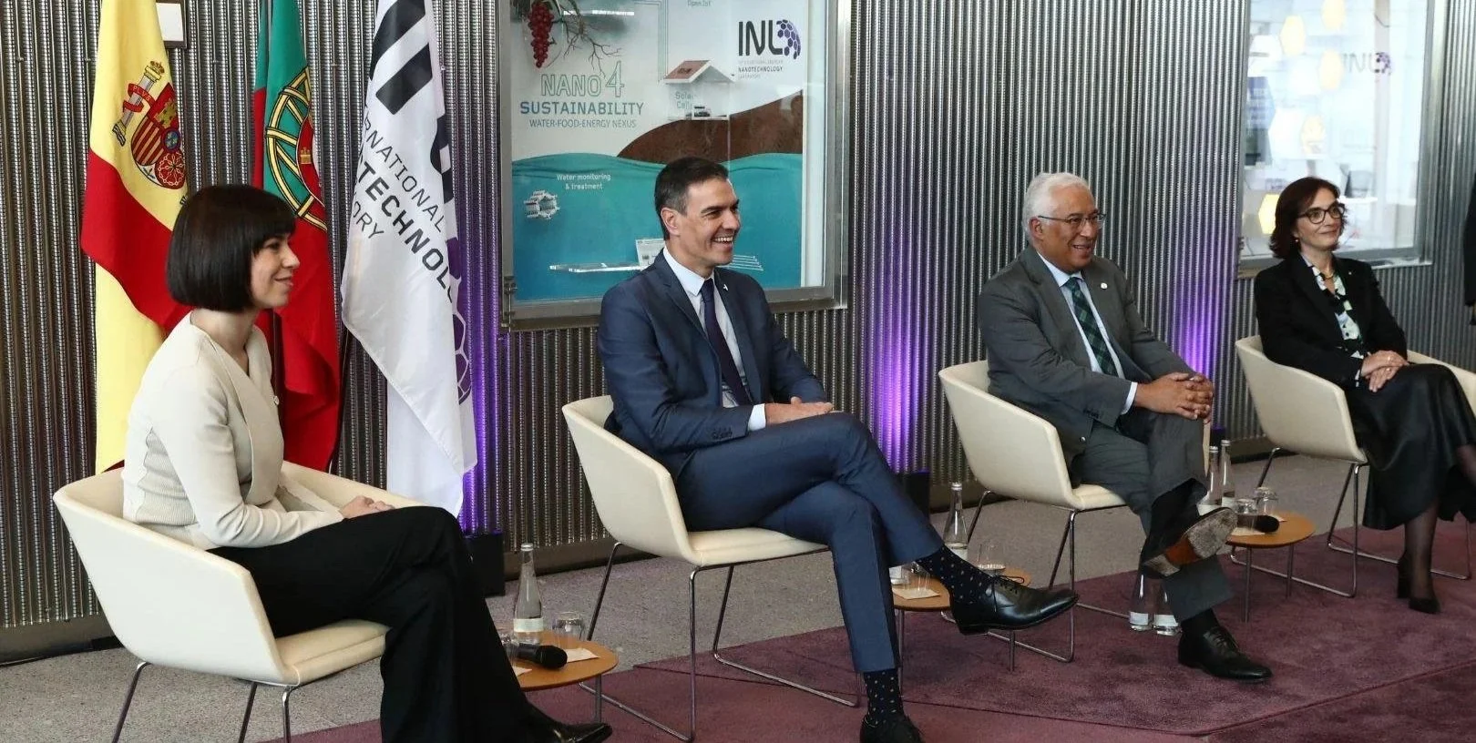 From left: Spain's Minister of Science and Innovation Diana Morant, Spanish PM Pedro Sánchez, Portuguese PM António Costa, and Portugal's Minister of Science, Technology and Higher Education Elvira Fortunato at the signing of the Atlantic Constellation agreement, Viana do Castelo, November 2022