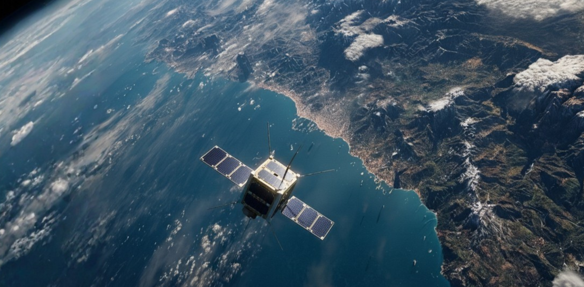 Illustration: AI-generated image of a microsatellite in low Earth orbit